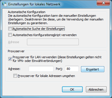 - Aktiviere die Option "Proxyserver für LAN verwenden".