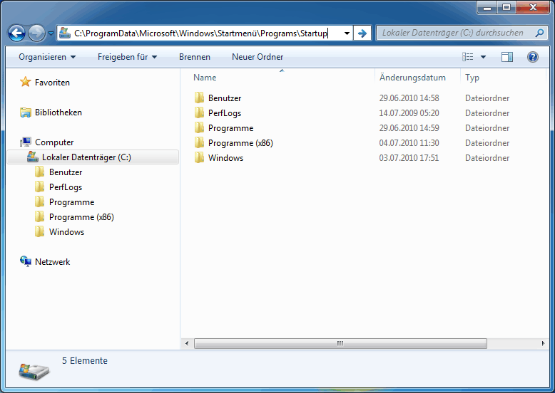 Leider ist das Anlegen einer benutzerübergreifenden Autostart-Verknüpfung unter Windows Vista und Windows 7 deutlich komplizierter geworden, als unter Windows XP und früheren Windows-Versionen:
