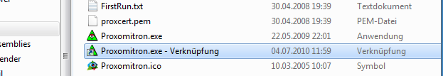 - Öffne das Kontextmenü der Datei Proxomitron.exe und klicke auf "Verknüpfung erstellen".
