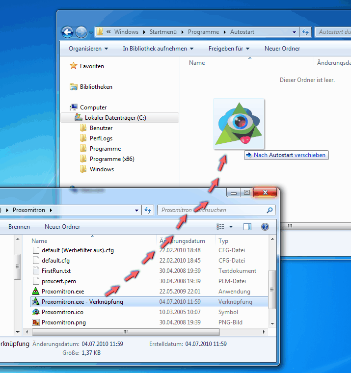 In dieser Anleitung zeige ich Schritt für Schritt, wie unter Windows 7 eine benutzerübergreifende Autostart-Verknüpfung für Proxomitron angelegt wird, sodass Proxomitron immer startet, wenn sich ein Benutzer anmeldet.